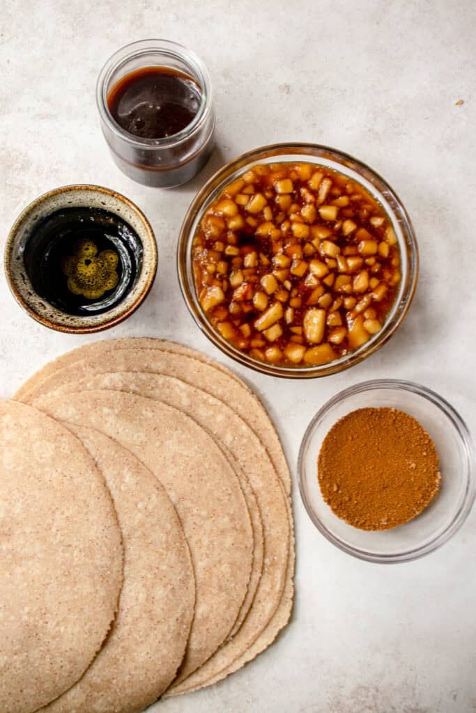 Let the apple mixture cool before assembling. Hot filling can soften the tortilla too much and cause tearing.