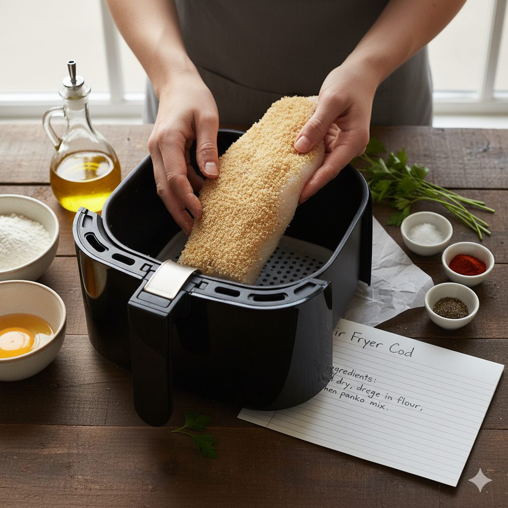 Keywords: Air fryer, Cod, Crispy, Healthy, Quick dinner,
