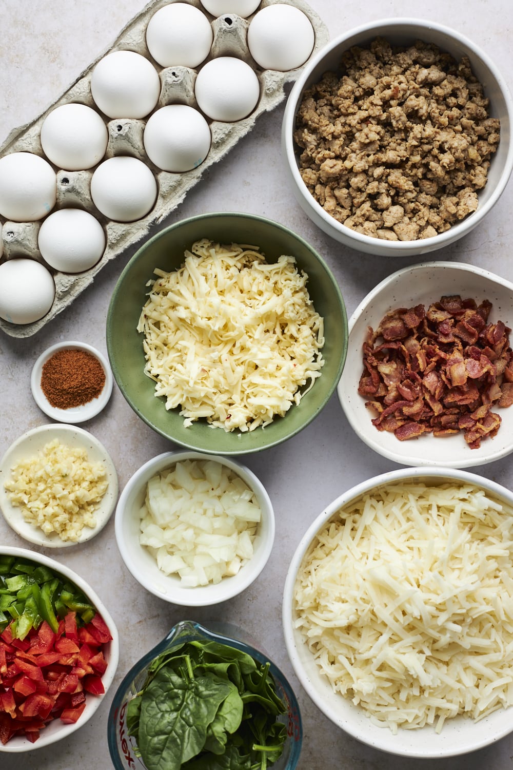 Bake individual portions in muffin tins for grab-and-go breakfasts or brunch buffets. Reduce baking time to about 20–25 minutes.