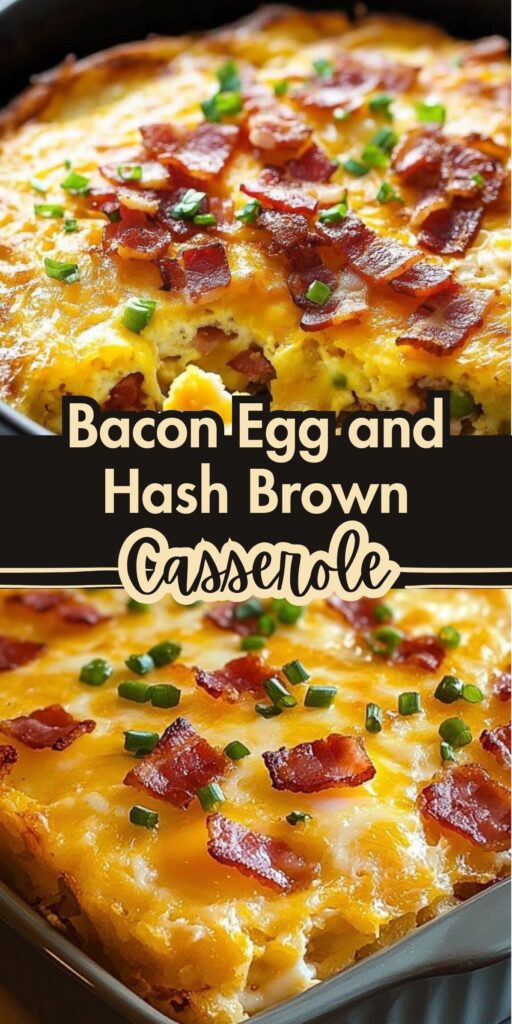 Bacon Egg and Hash Brown Casserole is a popular breakfast or brunch dish made by layering or mixing crispy bacon, eggs, shredded hash brown potatoes, cheese, and often cream or milk, then baking everything together until hot and bubbly.