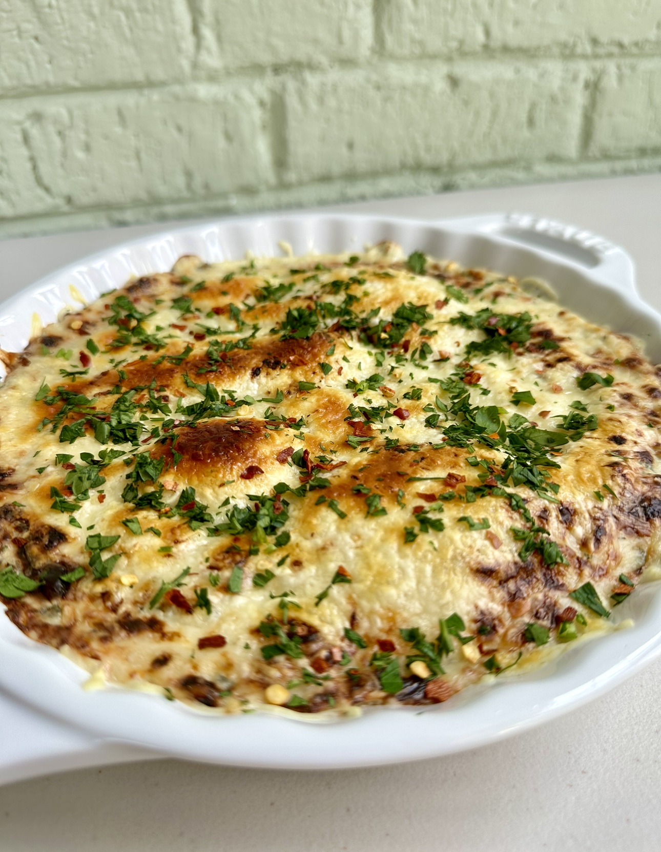 This dip takes everything you love about cheesy garlic bread and transforms it into a hot, bubbly appetizer that’s perfect for parties, game nights, or cozy nights in. It’s buttery, garlicky, melty, and pairs perfectly with sliced baguette, crostini, or crackers. Easy to whip up and guaranteed to disappear fast—this is comfort food at its finest.