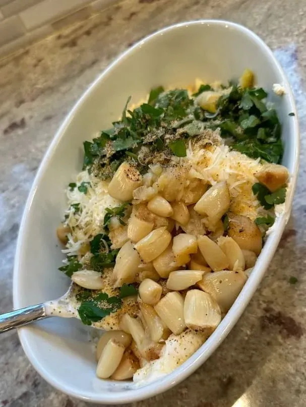 - Spinach & Artichoke Garlic Dip – Fold in chopped spinach and diced artichoke hearts for a more complex flavor and added texture.
