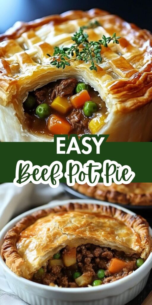 Beef Pot Pie is a comforting, savory dish featuring tender chunks of beef simmered with vegetables like carrots, peas, and potatoes in a rich, flavorful gravy.