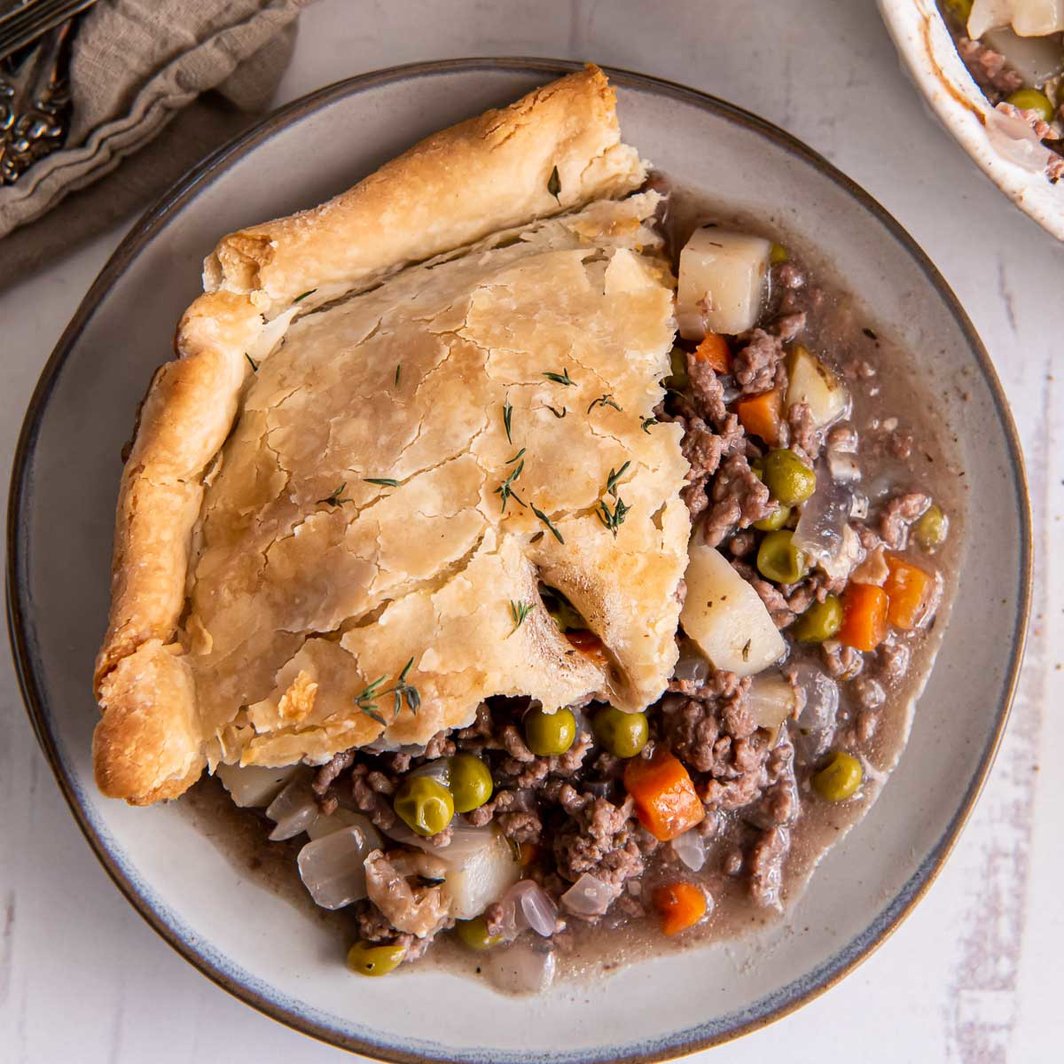 Instead of one large pie, try baking individual beef pot pies in ramekins or mini cast iron skillets. They look elegant and eliminate messy slicing.
