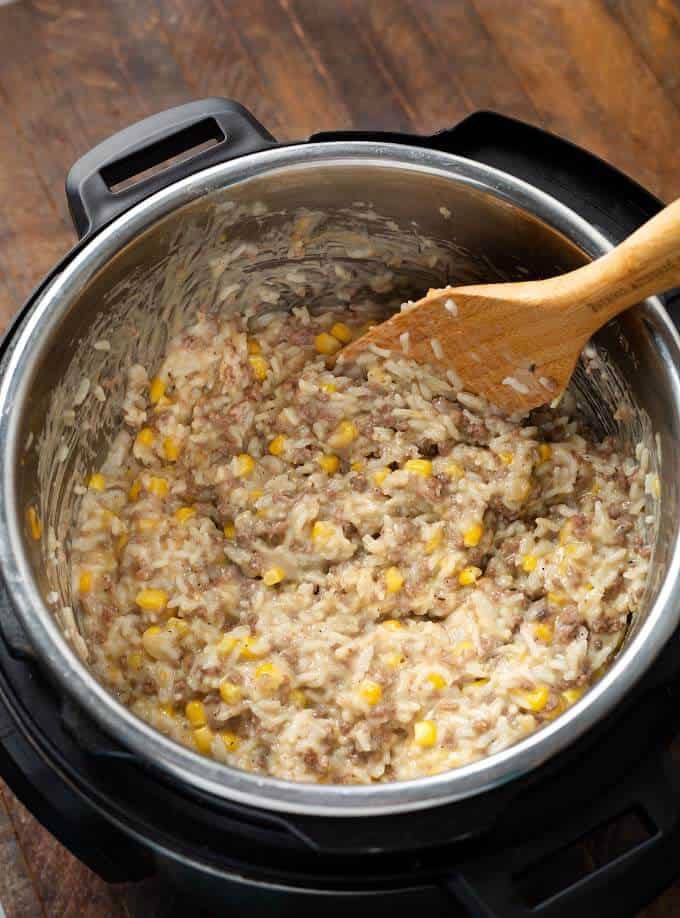 If you're using brown rice, it requires more liquid and a longer cook time than white rice. Be sure to adjust the liquid ratio accordingly, adding a little extra beef broth or water to compensate for the longer cooking time.