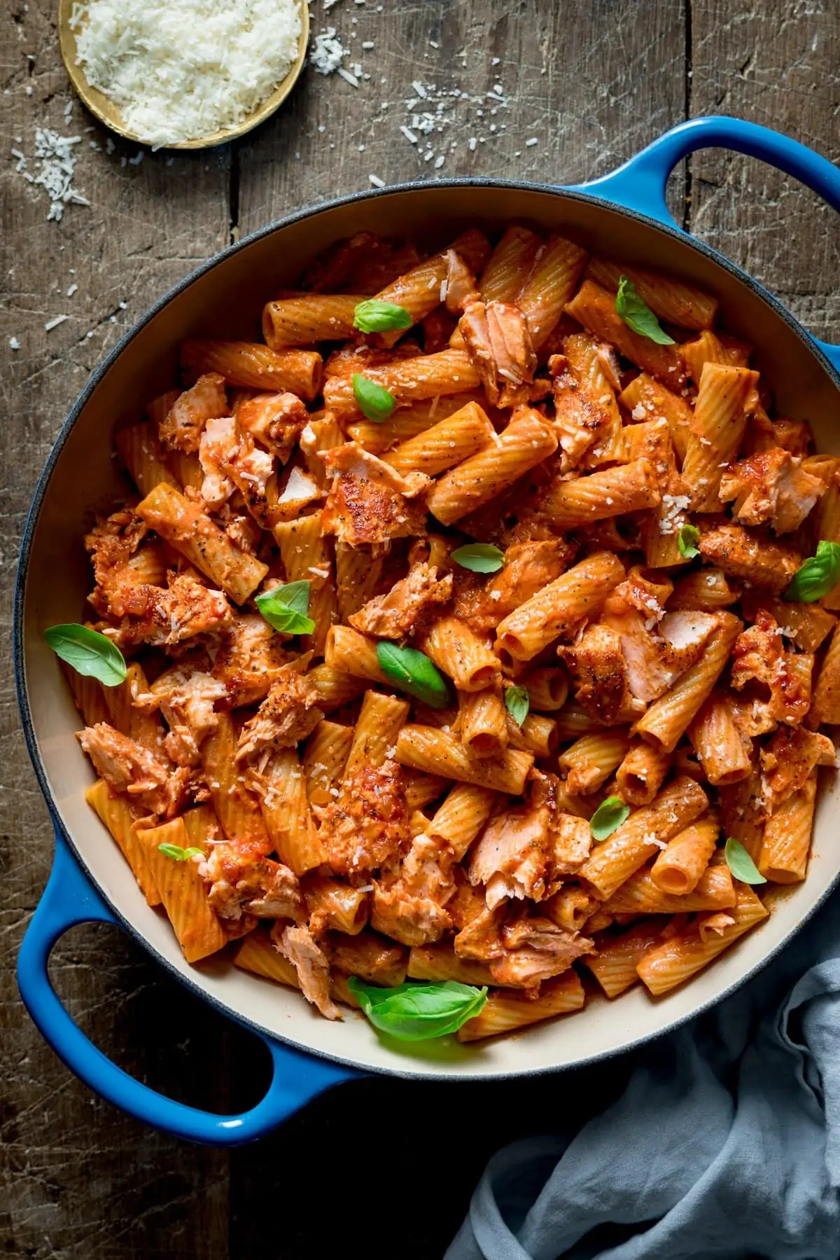 Serve your creamy tomato rigatoni hot, sprinkled with extra Parmesan cheese and fresh basil leaves for a burst of color and freshness.