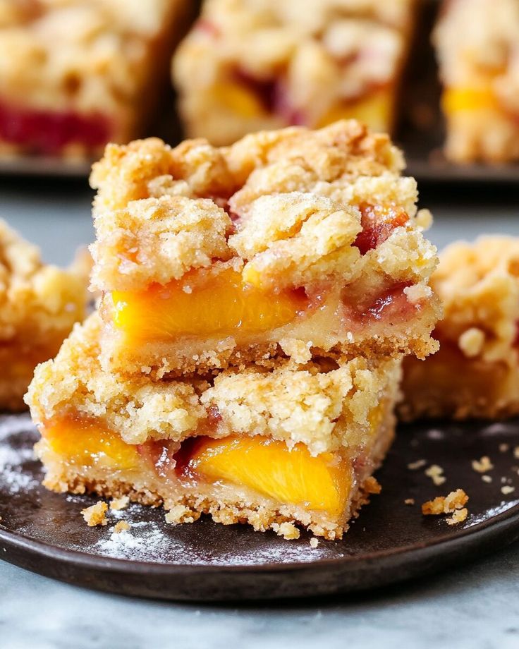 Golden, buttery, and bursting with fruity flavor, Peach Cobbler Crumble Bars are the ultimate summer-inspired dessert.