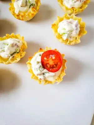 BLT Phyllo Party Bites are a crispy, bite-sized twist on the classic BLT sandwich. These delicious appetizers feature flaky phyllo cups filled with a creamy mixture of crispy bacon, juicy tomatoes, and fresh lettuce, all blended with a tangy mayo or ranch dressing.