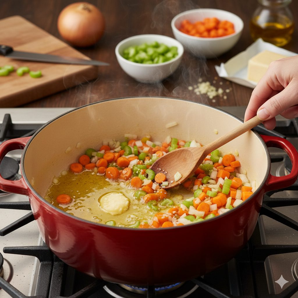 1. Building the Savory Foundation: The traditional French technique of mirepoix (sautéed onions, carrots, and celery) is your non-negotiable flavor base. The trick is to sauté these vegetables in butter for an extended period—about 8 to 10 minutes—until they are significantly softened and slightly caramelized. This step mellows their raw bite and creates a savory depth that simple boiling cannot achieve. For an extra layer of complexity, add minced garlic and a teaspoon of tomato paste after the vegetables have softened, cooking for just one more minute to bloom their flavors.