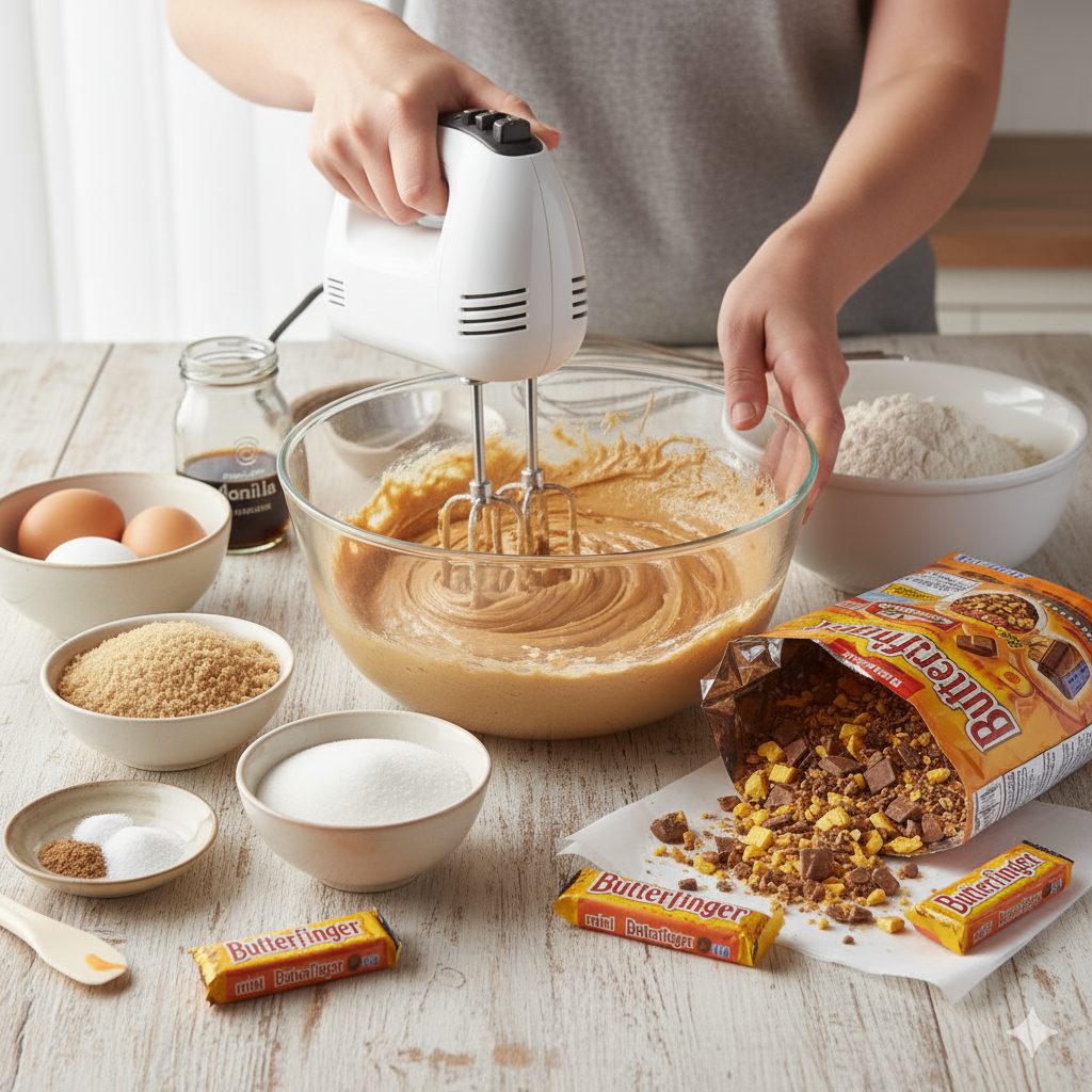 The Butterfinger Factor: The candy bar needs to be incorporated correctly. Use a food processor or a heavy-duty zipper bag and a rolling pin to crush the Butterfinger bars into coarse, irregular chunks—not a fine powder. Some larger pieces are desirable as they melt slightly and create pockets of caramel-like crunch. Add these crushed pieces at the very end of mixing, gently folding them in to prevent them from breaking down further.