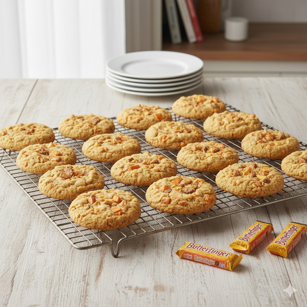 Cookie Board Dessert: For entertaining, arrange the cookies on a rustic wooden board alongside other complementary treats. Consider pairing them with salted caramel dipping sauce, mini chocolate chip cookies, and small bowls of crushed pretzels and extra chopped Butterfingers for a DIY ice cream sundae/dessert bar.