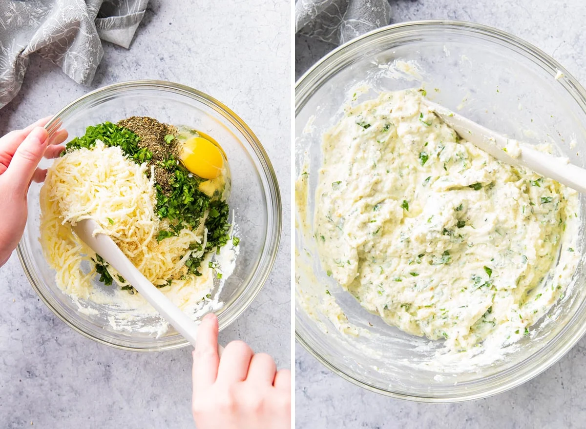 A good ricotta base should include shredded mozzarella and grated Parmesan. Add herbs like parsley, basil, or a pinch of nutmeg to deepen the flavor.