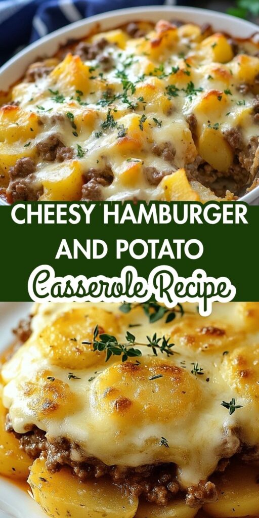 Cheesy Hamburger Potato Casserole is a hearty, comforting dish that combines layers of seasoned ground beef, sliced potatoes, a rich cheese sauce, and often a creamy soup base to bring everything together.