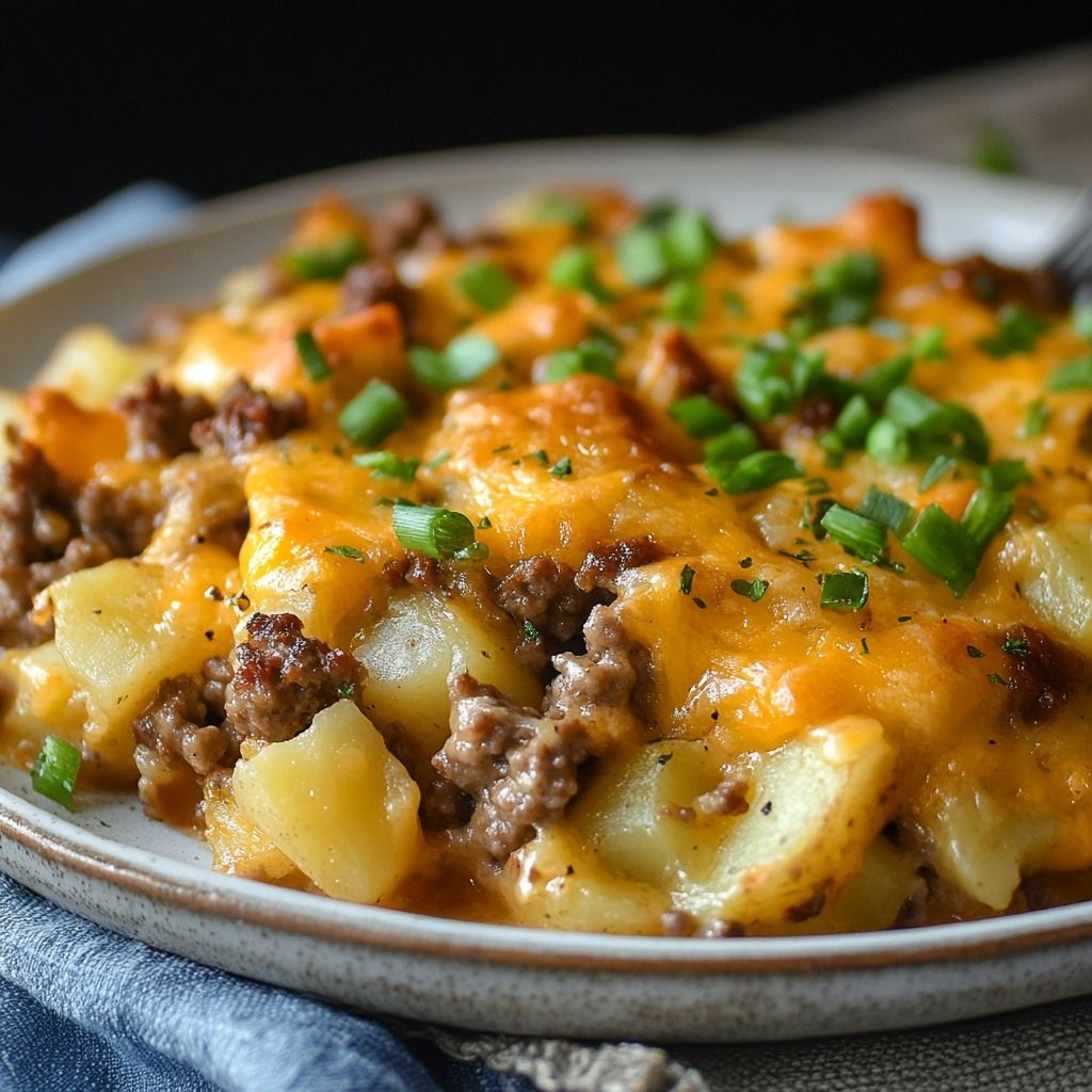 Baked until golden and bubbly, this casserole delivers the perfect balance of savory meat, tender potatoes, and melted cheddar cheese in every bite.