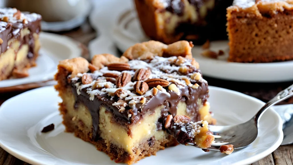 This indulgent treat features a chocolate cake base topped with a luscious cream cheese layer, studded with pecans and baked to gooey perfection. Whether served warm with a scoop of ice cream or cooled and cut into bars, it’s a crowd-pleaser that satisfies any sweet tooth.