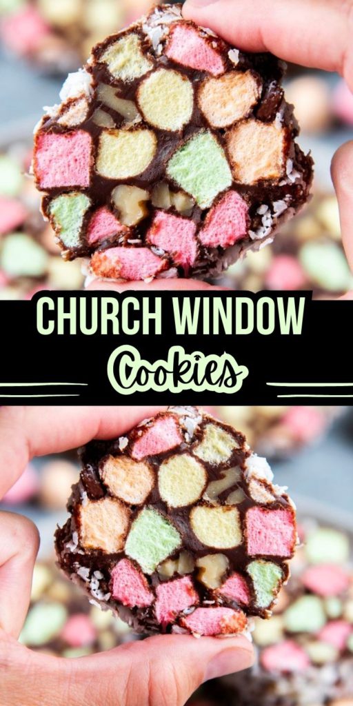 This treat is called a “Church Window” because when you slice it, the brightly colored marshmallows inside look exactly like stained glass panels illuminated by light. You absolutely must save this pin for the recipe, because this cookie offers maximum visual impact with minimal effort, requiring no oven time at all.
