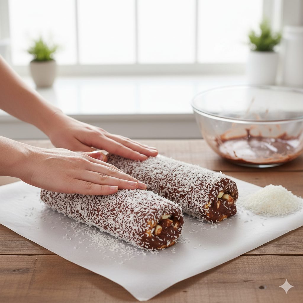 - Tip: Use the Right Wrap: Aluminum foil or plastic wrap work best for shaping. Lay out a generous sheet, dust it very lightly with powdered sugar (optional, but helps prevent sticking), and spoon the mixture onto it in a log shape.