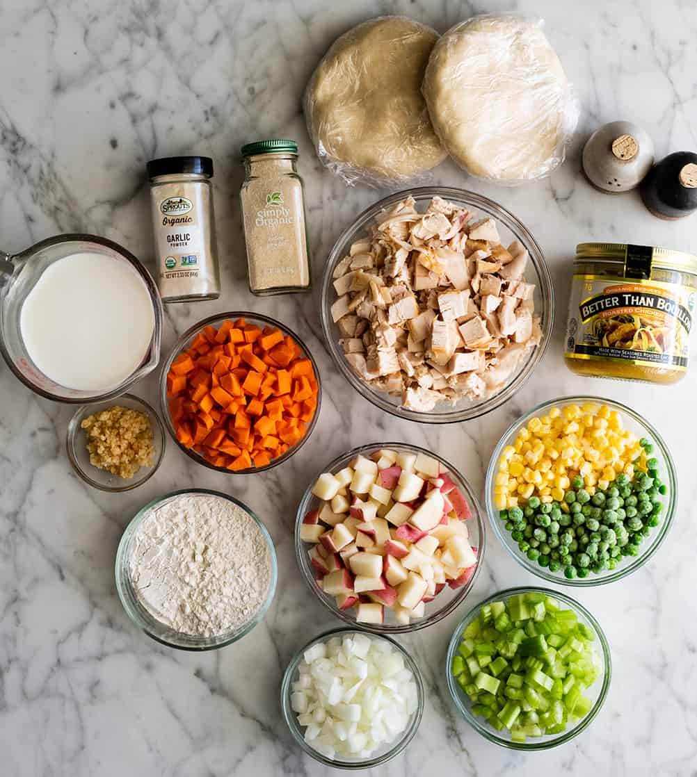 Classic chicken pot pie includes peas, carrots, and onions. You can also add celery, mushrooms, or potatoes. Dice vegetables uniformly so they cook evenly. Lightly sautéing harder vegetables like carrots and celery before adding them to the filling ensures they’re tender but not mushy. Frozen vegetables work in a pinch, but slightly undercook them first to avoid a watery filling.