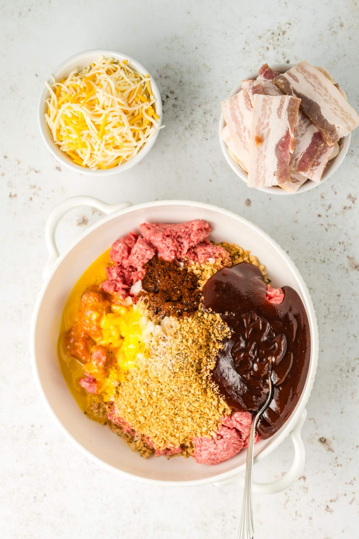 Enhance your meatloaf mixture with finely chopped onions, bell peppers, garlic, Worcestershire sauce, and a dash of smoked paprika or chili powder for a southwestern twist. Adding shredded cheese (cheddar or pepper jack) directly into the meat mixture can also give it a gooey, rich texture.