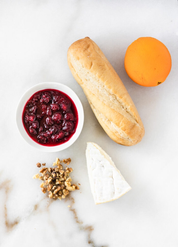4. Top each toast with a slice of Brie cheese and a spoonful of cranberry sauce.