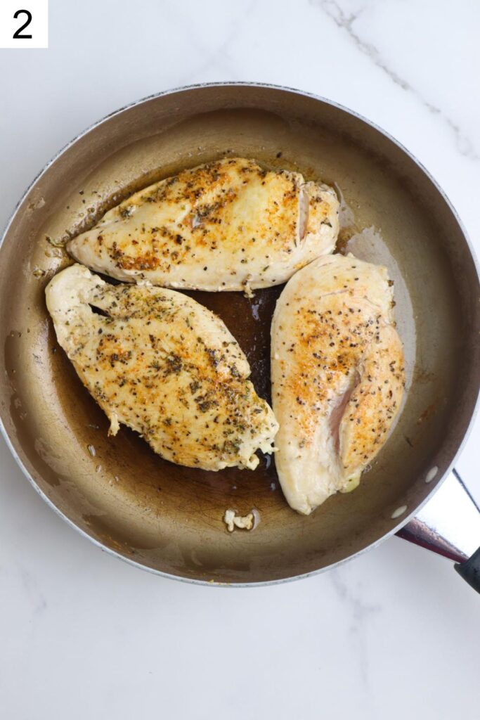 Heat olive oil in a large skillet over medium heat. Add chicken and cook for 5–6 minutes per side until golden and cooked through. Remove and set aside.