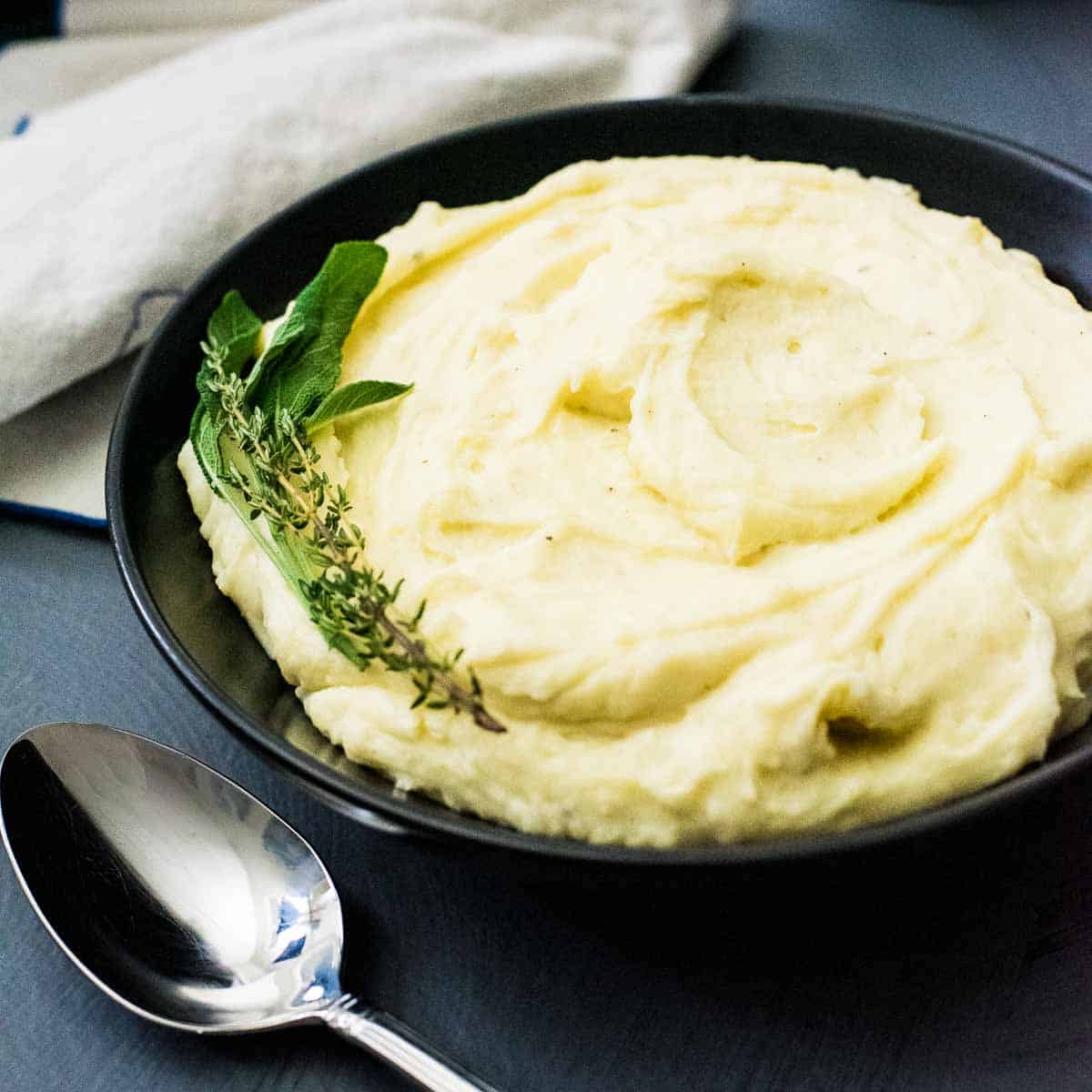 For a lighter version, use low-fat milk or Greek yogurt. Cheesy mashed potatoes with Parmesan, cheddar, or Gruyère are indulgent and perfect for special occasions.