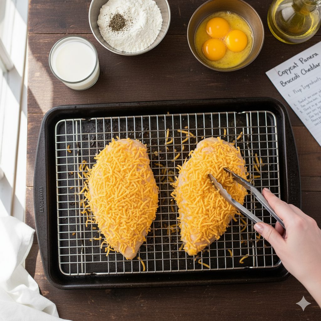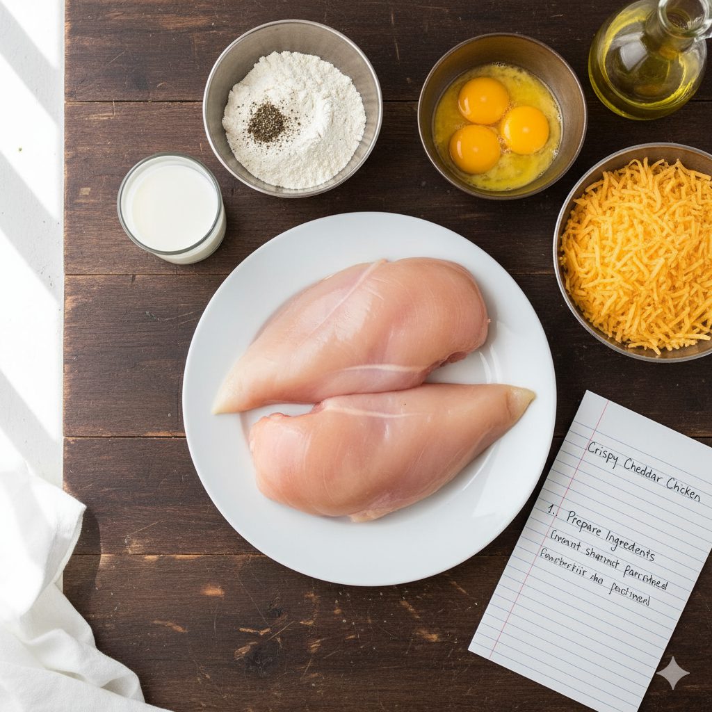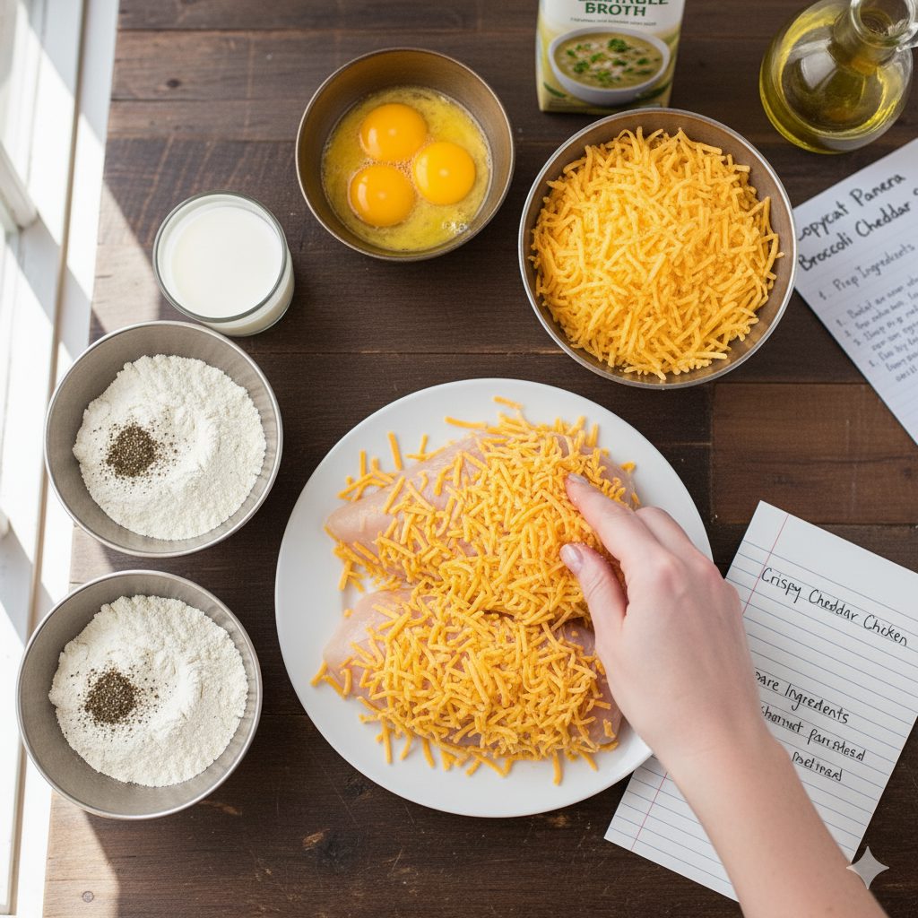 Ready for the best part? In the next section I’ll walk you through how to assemble, pan-fry, and finish these golden pockets of cheesy bliss. Grab a fork, because once you try this Crispy Cheddar Chicken, it’s going to be on heavy rotation in your kitchen. Serve with tangy ranch, garlic aioli, or a quick slaw — each bite pairs beautifully with crisp green salad or mashed potatoes.