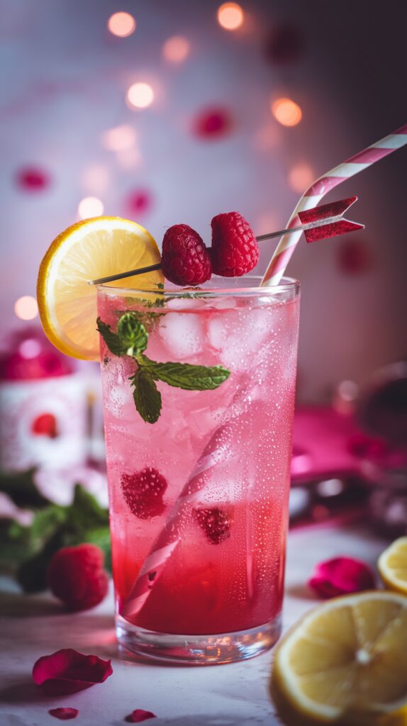 - Garnishes: Skewer raspberries on cocktail picks, float thin lemon slices in the drink, or add a sprig of mint for freshness. If you want to be extra playful, use small candy hearts on the rim for a sweet touch.