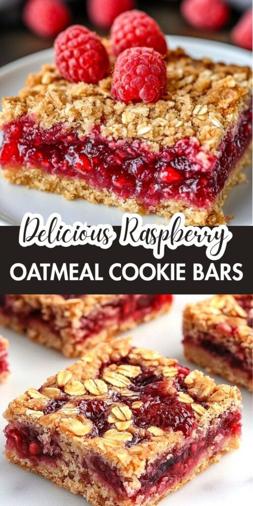 These bars are a perfect balance of tart and sweet. The buttery oatmeal crust and crumble topping provide a chewy, golden texture, while the raspberry jam or fresh raspberries in the middle add a bright, fruity burst. The contrast between the crunchy oats and soft filling is what makes each bite so satisfying.