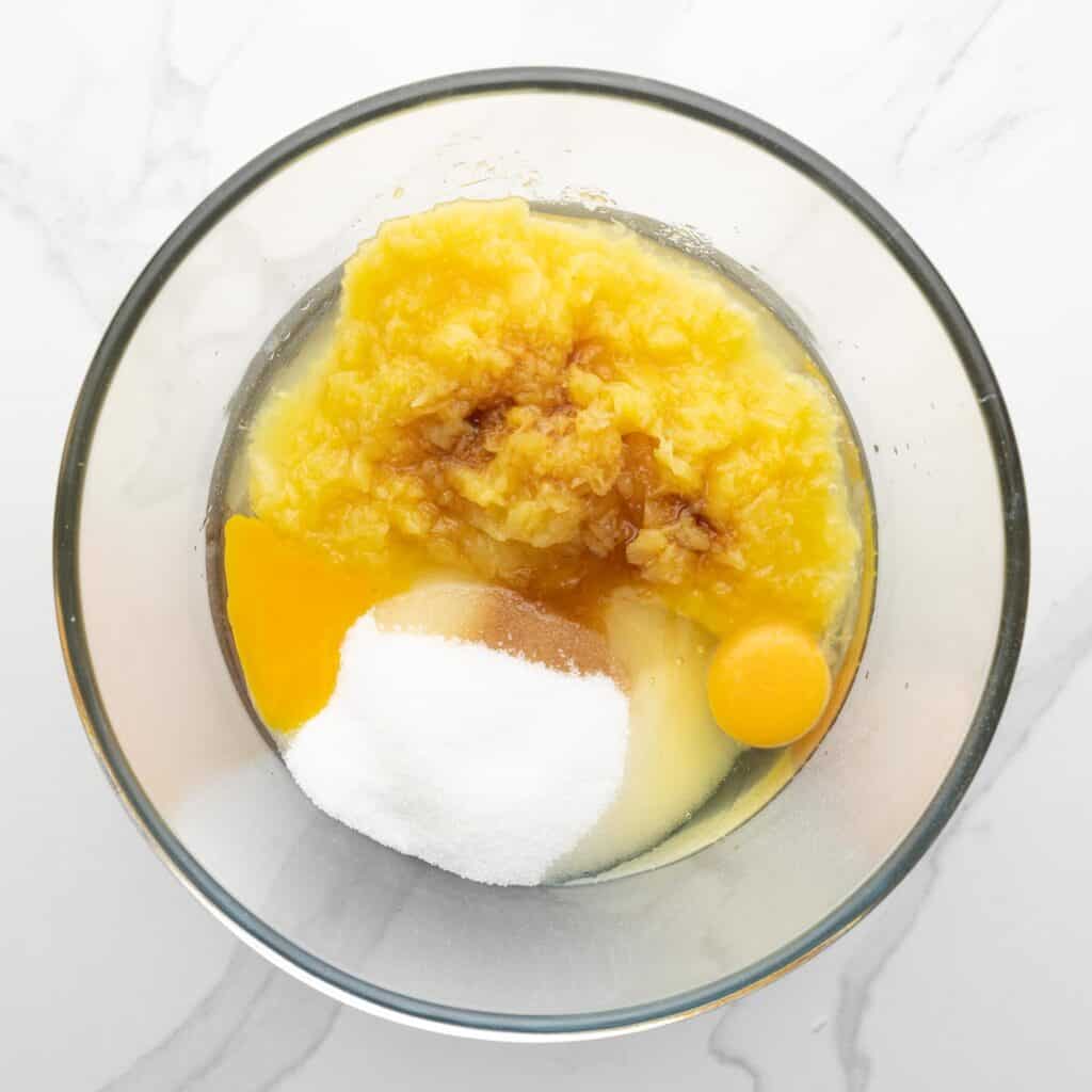 Beat in eggs one at a time, followed by the vanilla extract, until fully incorporated. The batter will start to look smooth and creamy.