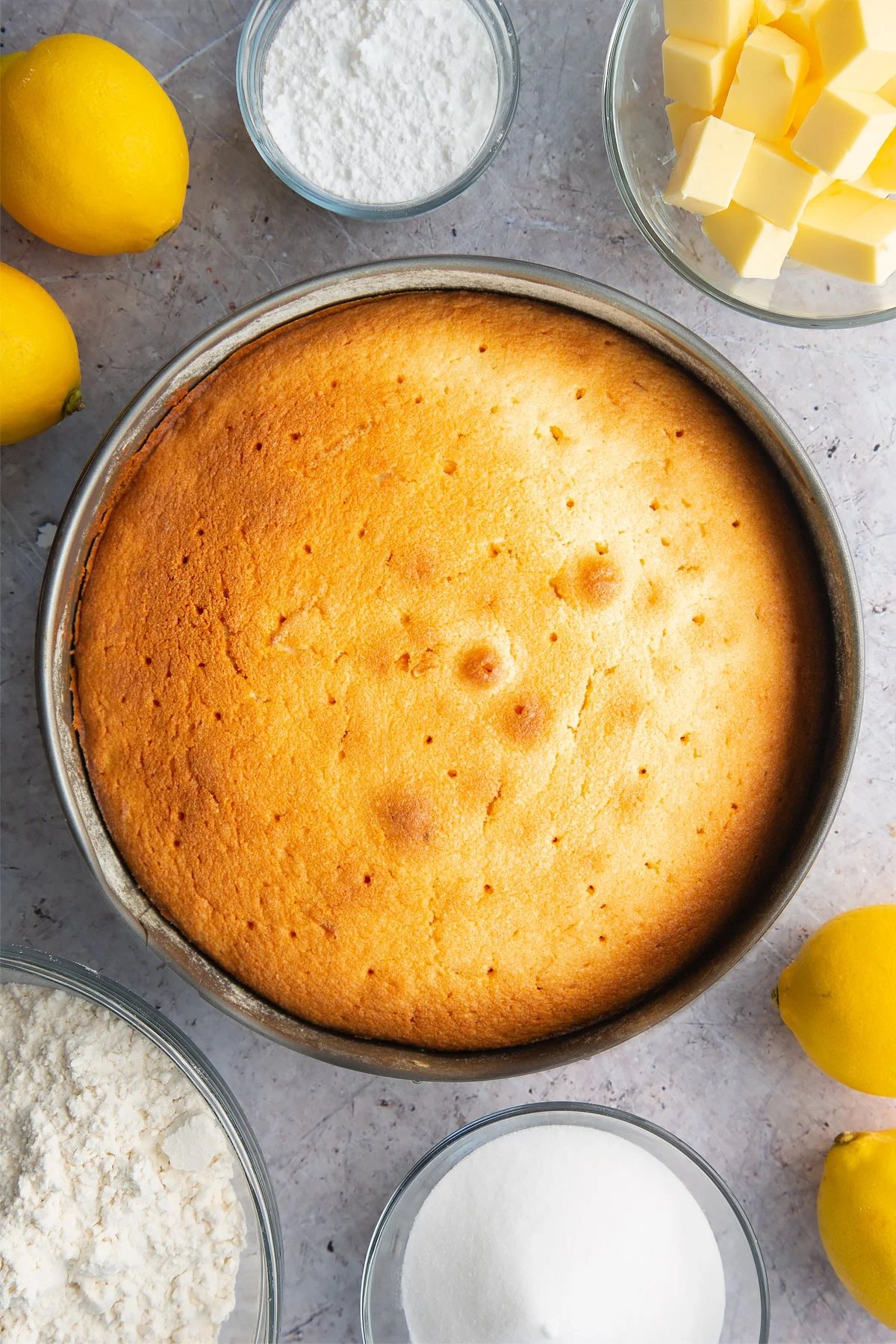 After baking, pierce the top of the cake with a skewer or fork before pouring over the lemon-sugar drizzle. This helps the syrup soak deep into the cake for ultimate moistness.