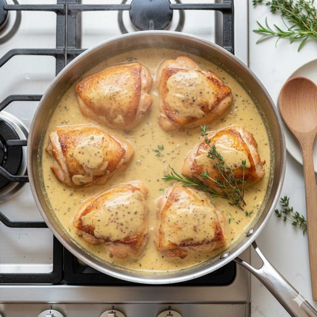 French Mustard Chicken (Poulet à la Moutarde) is far more than a simple weeknight meal; it is a testament to the fact that minimal, high-quality ingredients, when treated with respect and technique, can yield a truly remarkable culinary experience. By focusing on a perfect sear, diligent deglazing, and the use of authentic Dijon mustard and crème fraîche, you transform humble chicken into an elegant, comforting dish that is a staple of French home cooking. This recipe is a must-make for anyone seeking a sophisticated dinner that remains fundamentally easy to execute.