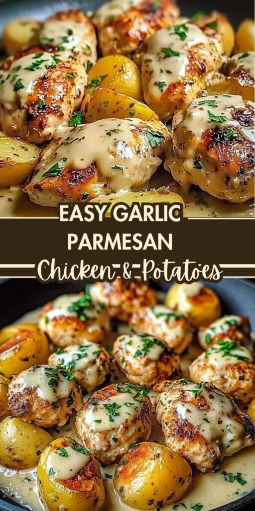 Garlic Parmesan Chicken and Potatoes is a hearty, one-pan dinner packed with flavor and comfort. Juicy, seasoned chicken thighs or breasts are roasted alongside tender, golden potatoes, all coated in a rich garlic-parmesan butter sauce.