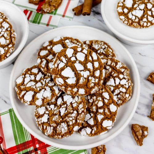 Gingerbread Crinkle Cookies are a festive favorite that combine the cozy warmth of traditional gingerbread spices with the soft, chewy texture of a crinkle cookie.