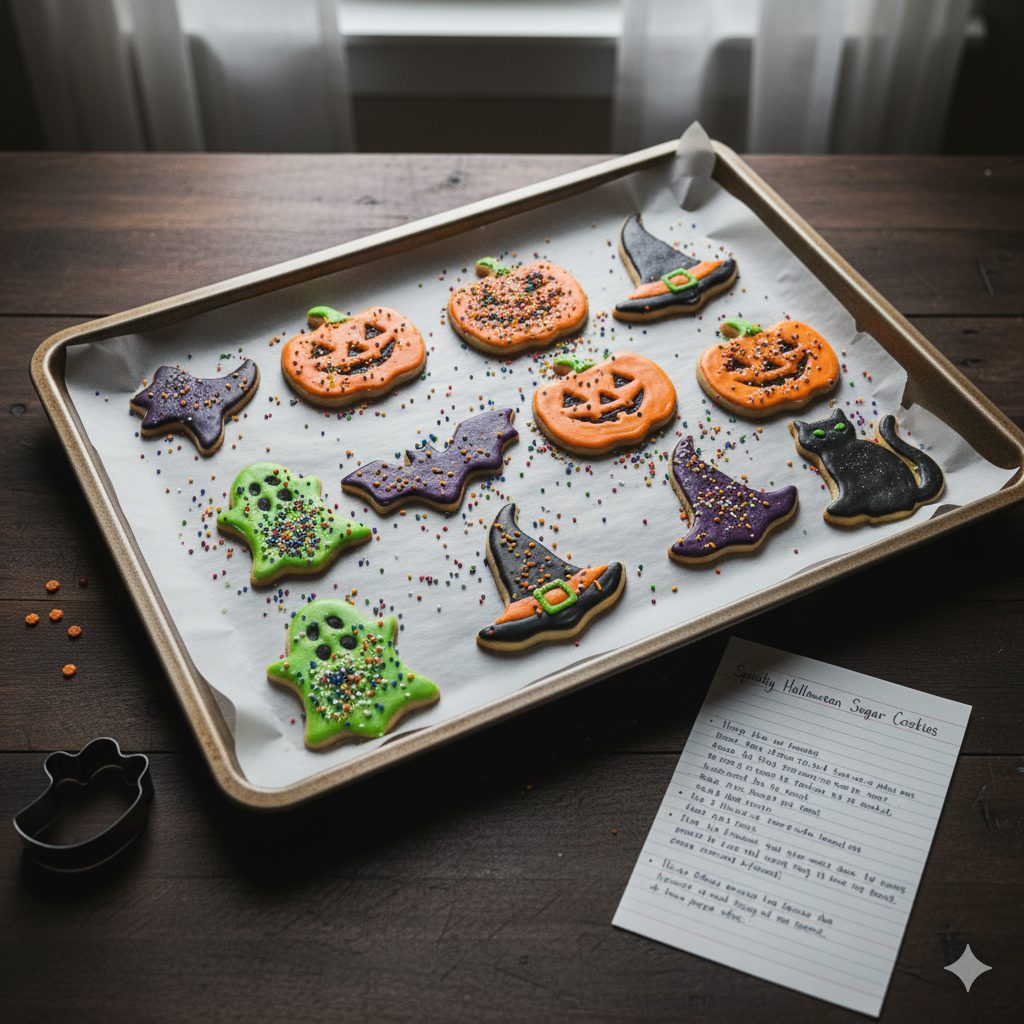 These cookies are a soft-but-sturdy sugar cookie base that holds shape well for cutting into ghosts, pumpkins, bats, and tombstones. They’re lightly crisp at the edges and tender inside, and they take color and decoration beautifully — so you can go spooky, silly, elegant, or kid-approved kooky. The recipe is forgiving, so even if you’re not a pro decorator, you’ll get charming results.