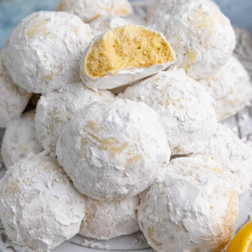 Yes! Lemon Snowball Cookies are perfect for making in advance. You can prepare the dough, shape it into balls, and freeze them on a baking sheet. Once frozen, transfer to a freezer bag and store for up to 2 months. When ready to bake, simply place them on a tray and bake straight from frozen, adding 1–2 minutes to the baking time. Baked cookies can also be frozen after cooling and rolled in sugar. For best results, re-roll them in powdered sugar after thawing.