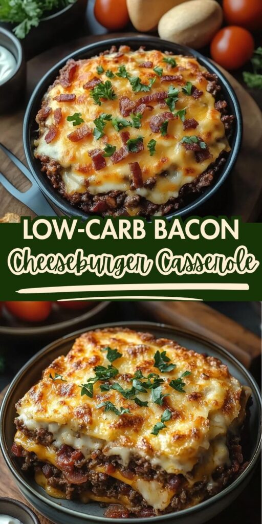 The Low-Carb Bacon Cheeseburger Casserole is a keto-friendly comfort food dream — rich, cheesy, savory, and full of flavor without the bun.