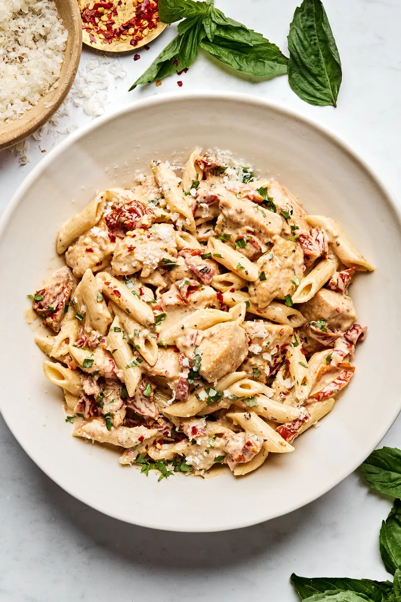 Creamy garlic sun-dried tomato sauce wraps around juicy chicken and al dente pasta. Finished with a sprinkle of Parmesan and fresh herbs, it’s a one-pan wonder that’s impossible to resist.