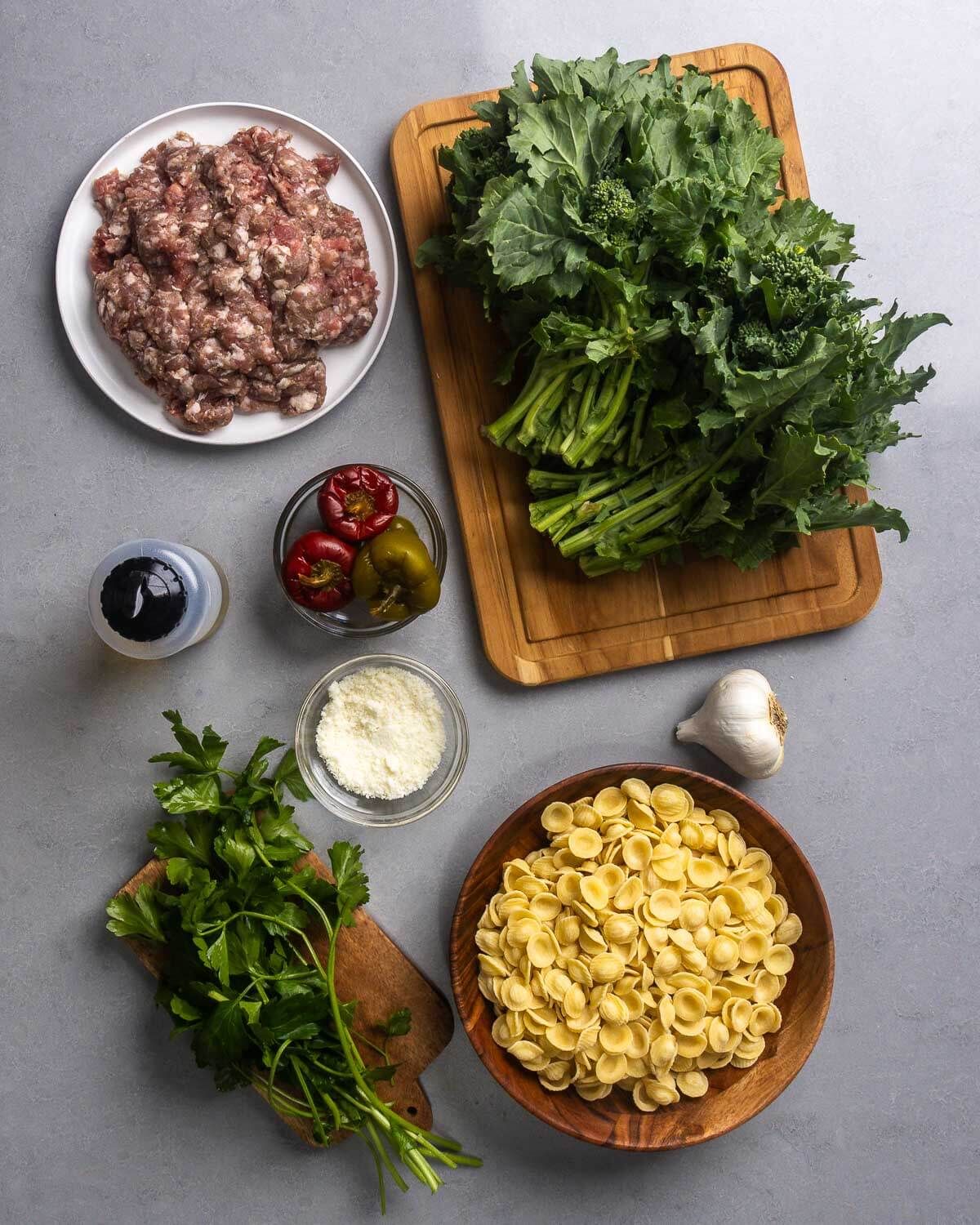 Orecchiette with sausage and broccoli is a classic Italian dish from the Puglia region.