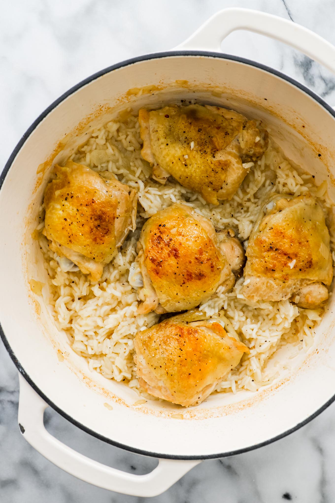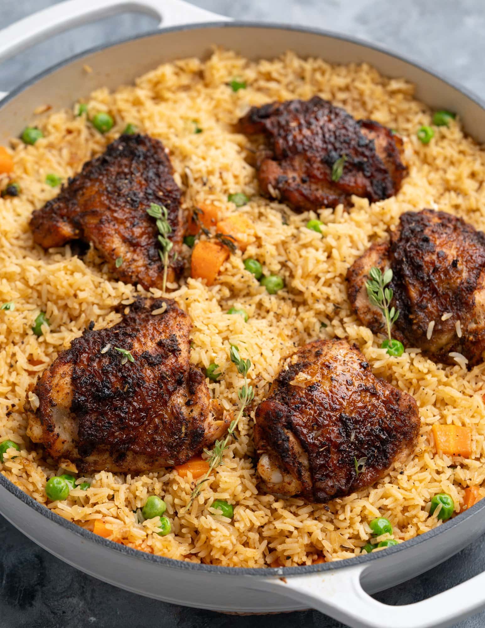 The rice becomes a delicious side that soaks up all the delicious flavors from the chicken, while the crispy skin adds the perfect contrast in both texture and taste. Plus, the dish comes together in one pan, meaning fewer dishes and less cleanup—always a win.