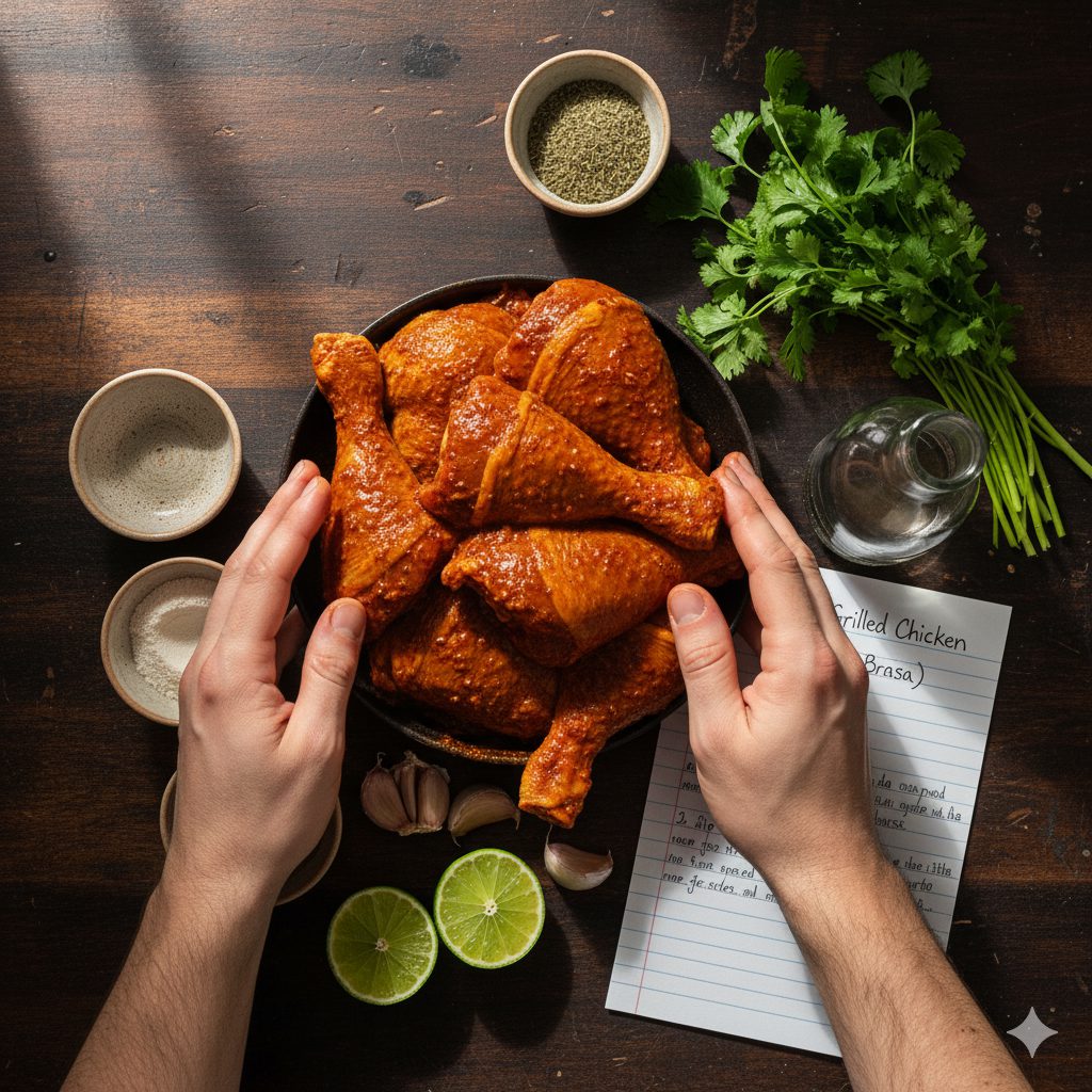 Prepare the potent seasoning paste by mixing finely chopped garlic, ground cumin, smoked paprika, a sprinkle of dried oregano, and a blend of coarse salt and freshly cracked black pepper. Incorporate liquid elements: a splash of lime juice, a measure of soy sauce, and a dash of vinegar (such as apple cider or red wine) to introduce the characteristic savory tang. Fully coat your chicken pieces (or whole spatchcocked bird) with this powerful mixture, working the paste beneath the skin where possible to ensure deep flavor saturation. Enclose the prepared chicken securely in a zip-top bag or a bowl covered tightly with plastic film. -