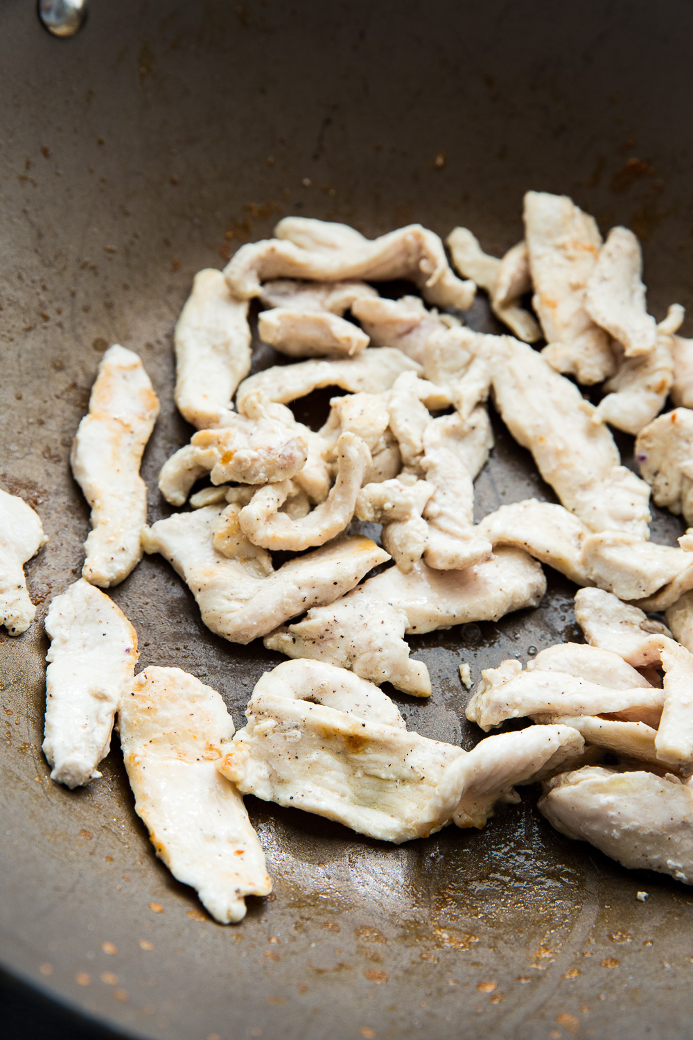 - Slice chicken against the grain into thin strips to ensure quick, even cooking.
