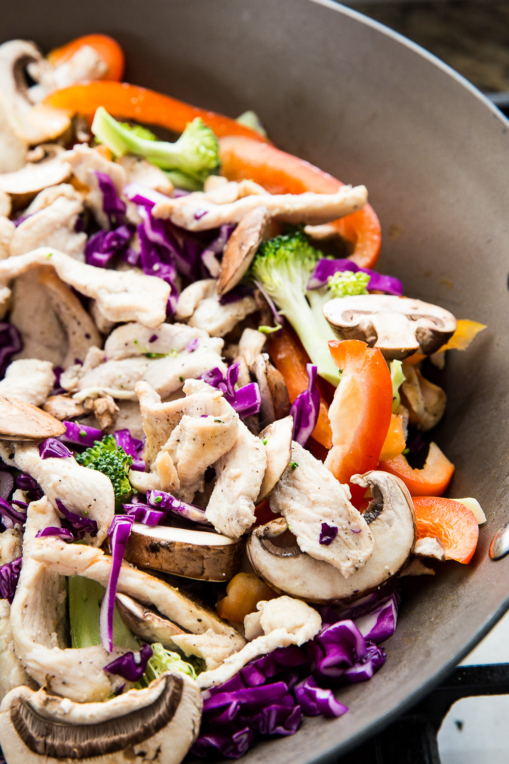 - Cook the chicken first, then remove it before stir-frying the veggies to avoid overcooking.