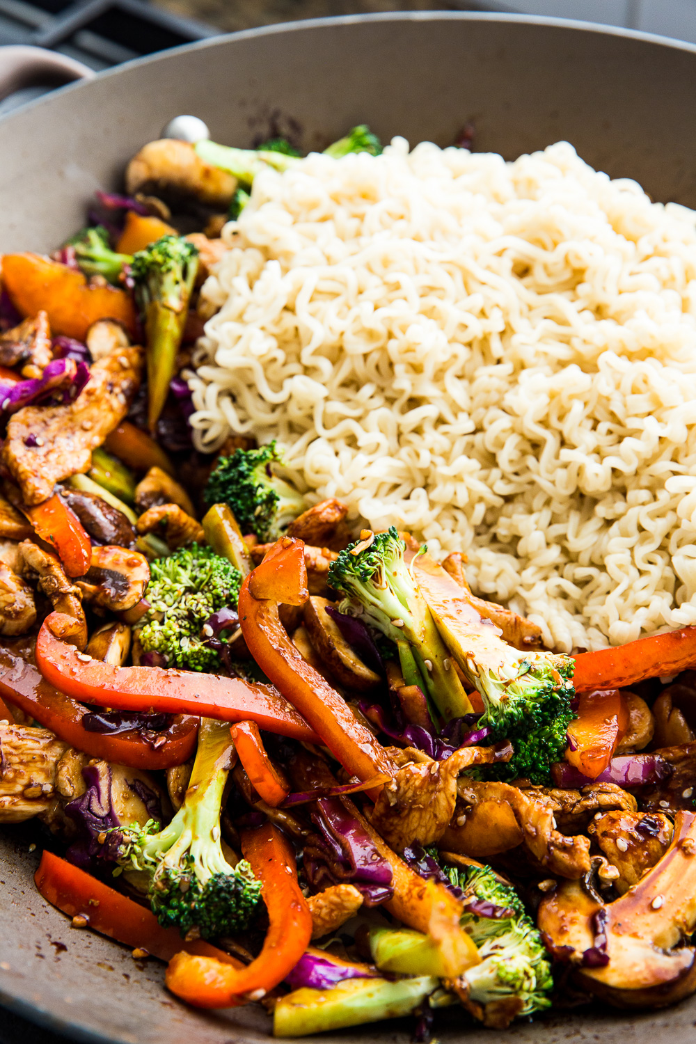 Ramen stir fry is best enjoyed fresh. The noodles tend to absorb the sauce over time, which can make them sticky. If prepping ahead, keep noodles and sauce separate until ready to eat.