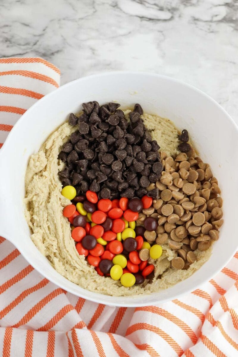 Yes! While Reese’s Pieces are the signature candy for this recipe, you can substitute with peanut butter chips, M&M’s, or even chopped Reese’s cups for a similar effect.