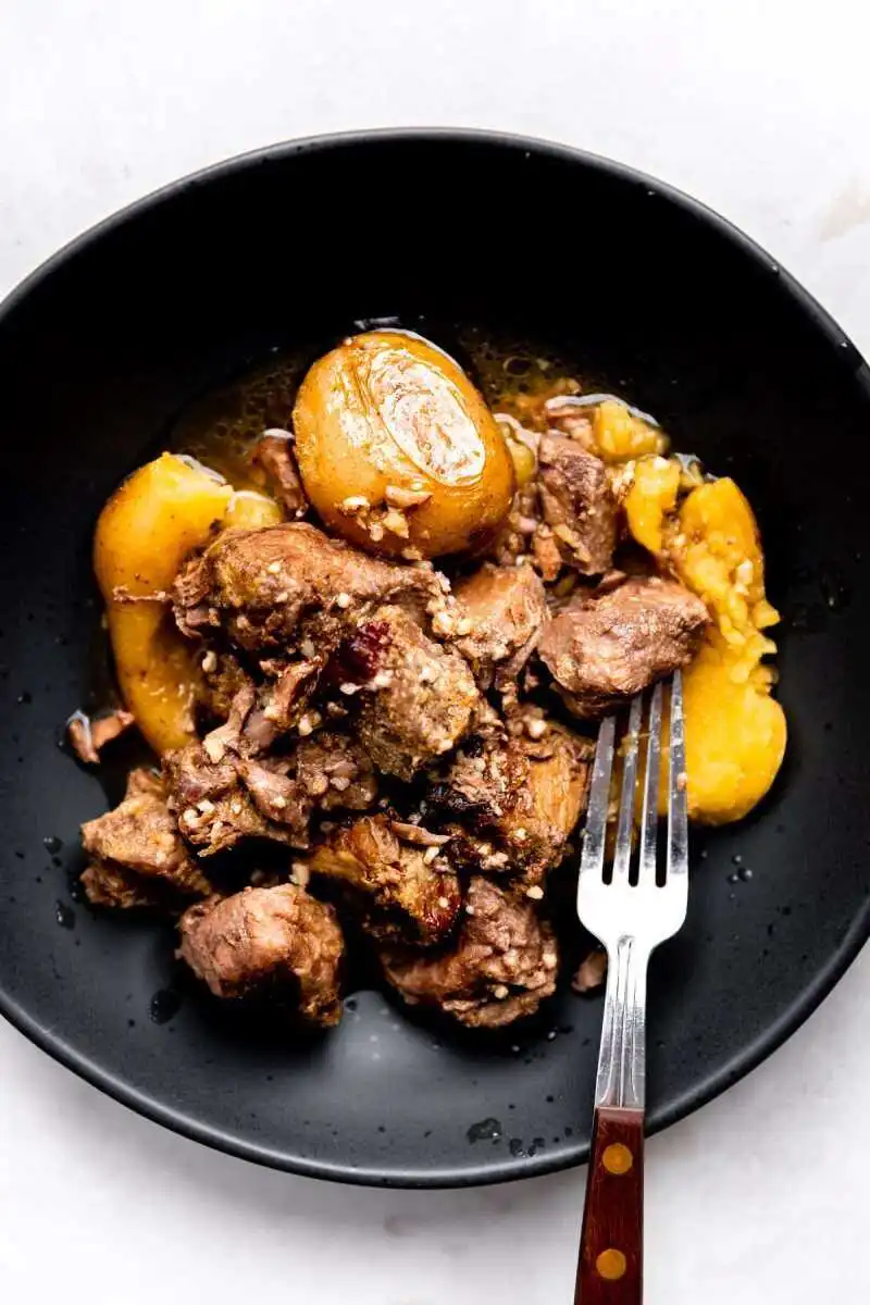The beef is paired with hearty potatoes, absorbing all the delicious juices, making it a comforting and satisfying meal.