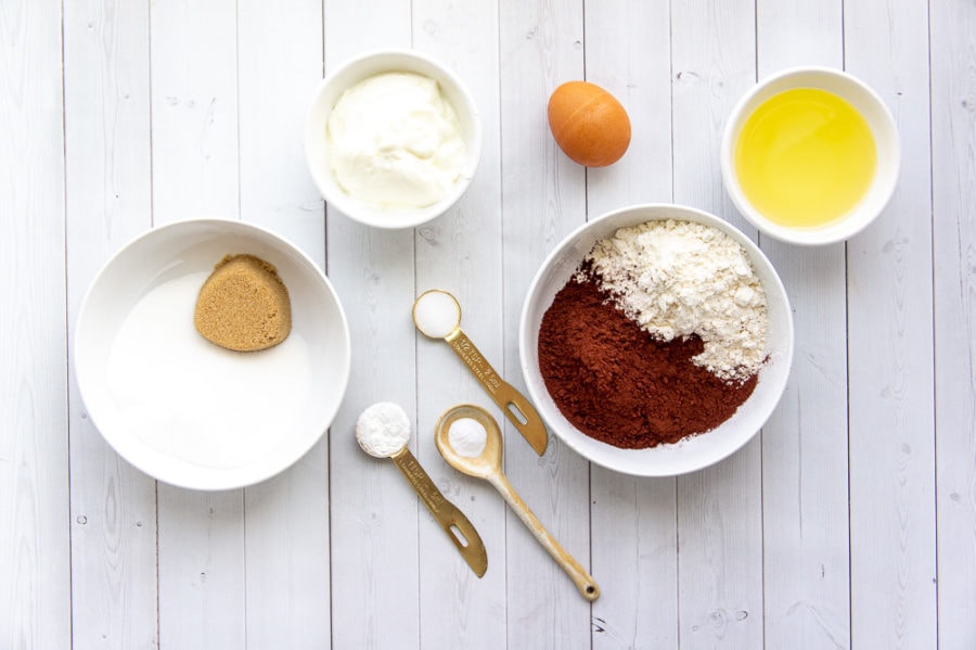 In a medium bowl, sift together the flour, cocoa powder, baking soda, baking powder, and salt. Whisk until combined. Sifting ensures there are no cocoa lumps.