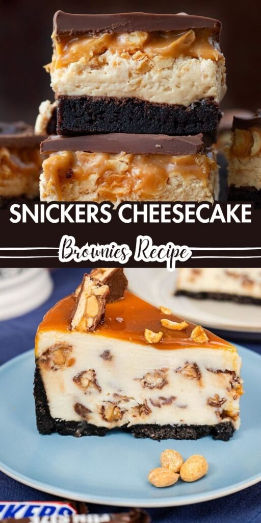 Snickers Cheesecake Brownies are an indulgent dessert mashup that combines rich, fudgy brownies with a creamy cheesecake layer and chunks of Snickers bars.