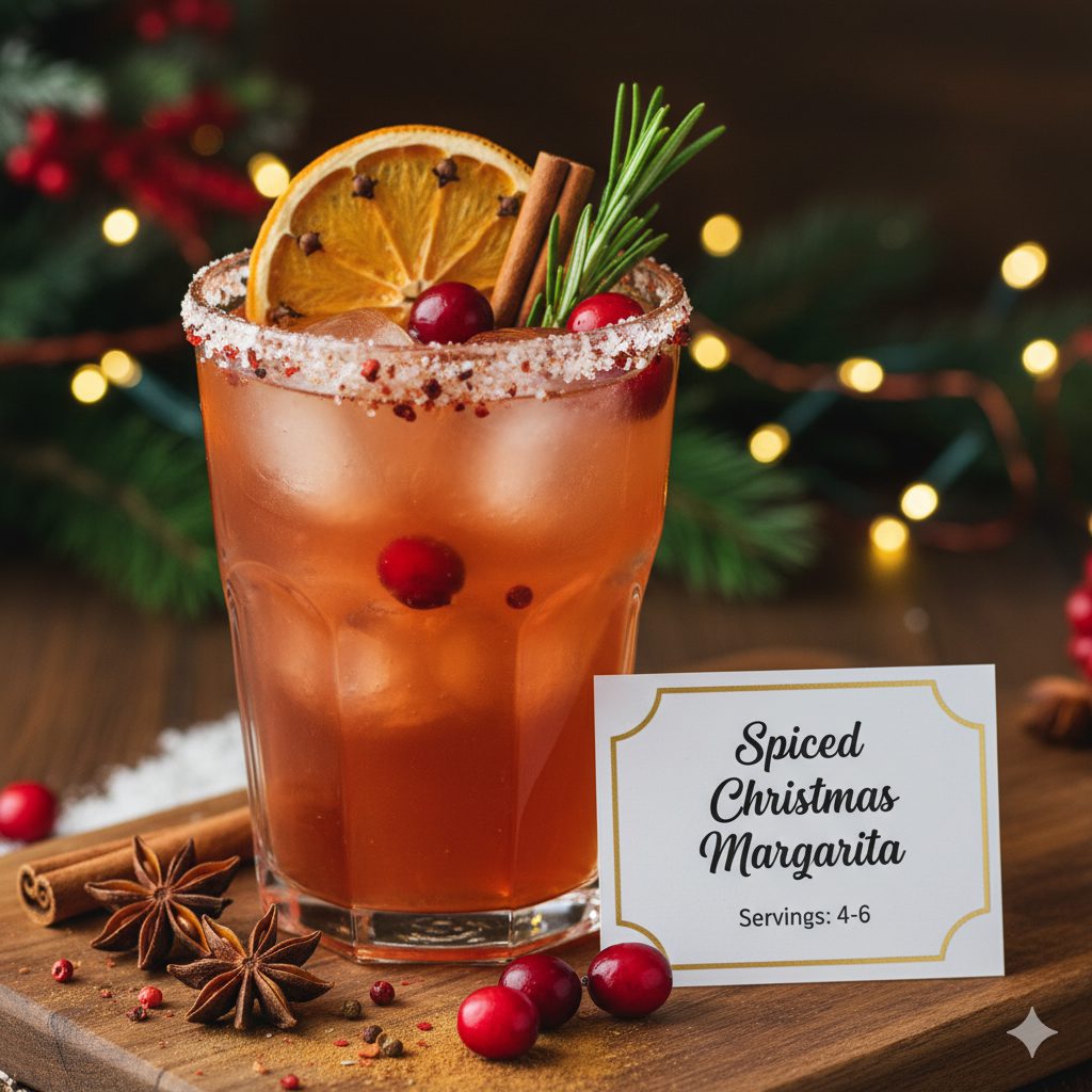 A Spiced Christmas Margarita is a holiday-inspired twist on the traditional margarita, combining tequila, orange liqueur, cranberry juice, and warm spices like cinnamon and clove.