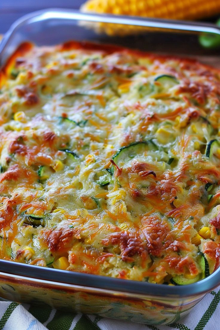 It’s easy to prepare, budget-friendly, and a great way to use up an abundance of garden zucchini. With melty cheese, tender vegetables, and golden cornbread baked into one dish, it offers a satisfying balance of textures and flavors. Whether served warm or at room temperature, it’s a crowd-pleaser that works for any season.